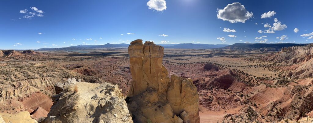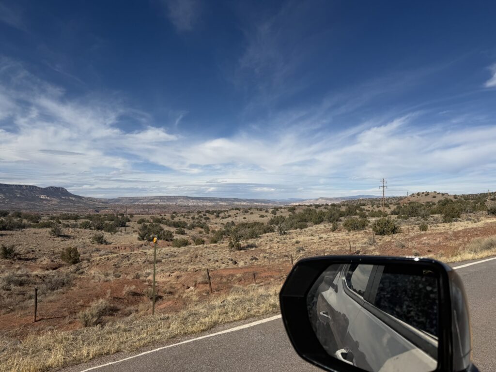 Packed up in Albuquerque and made the drive out to Ghost Ranch. The landscape shifted pretty quickly — flat-top mesas, deep-cut canyons, and that wide-open New Mexico sky the whole way.